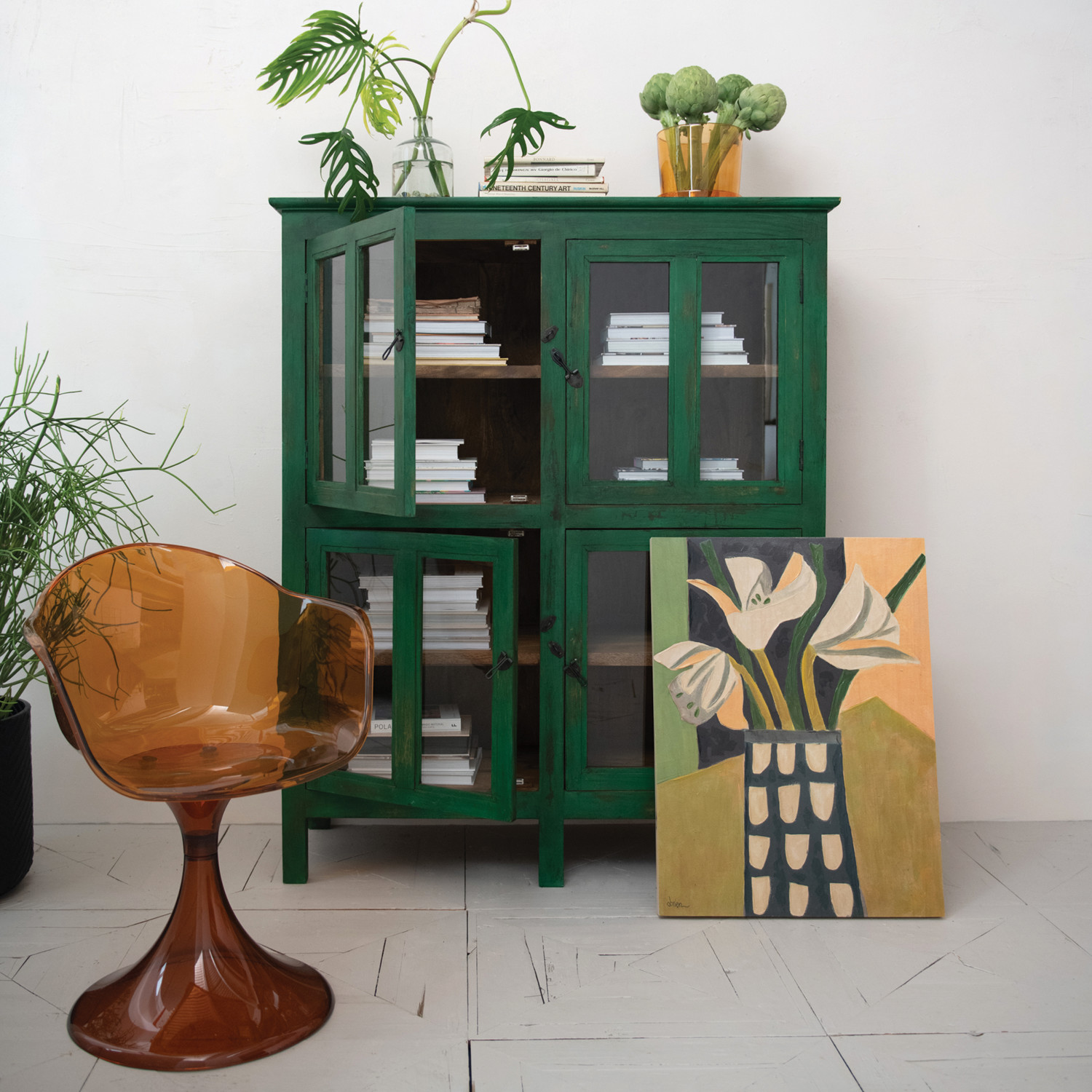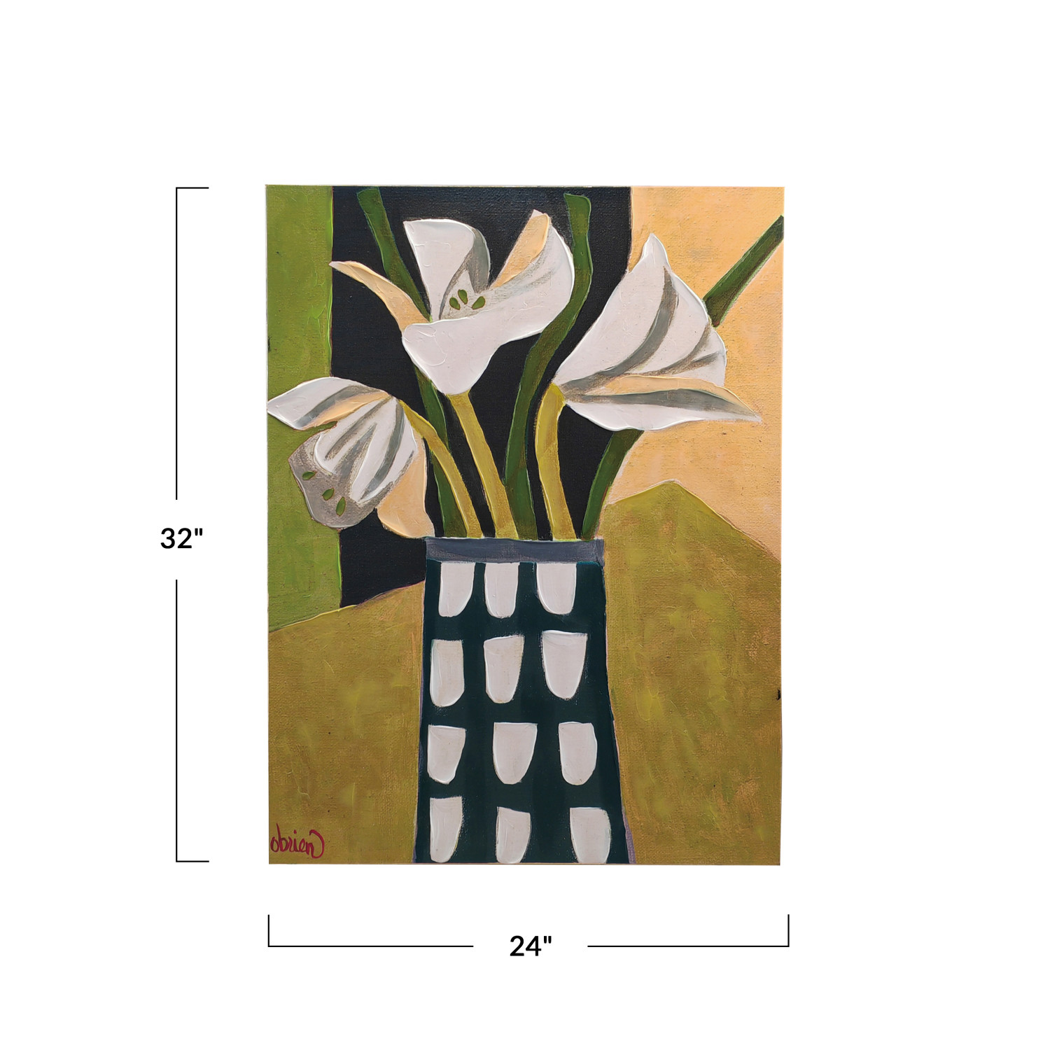 Catalog Name: 24"W x 32"H Hand-Painted Wood Framed Canvas Wall Décor w/ Abstract Flowers in Vase Image, Multi Color