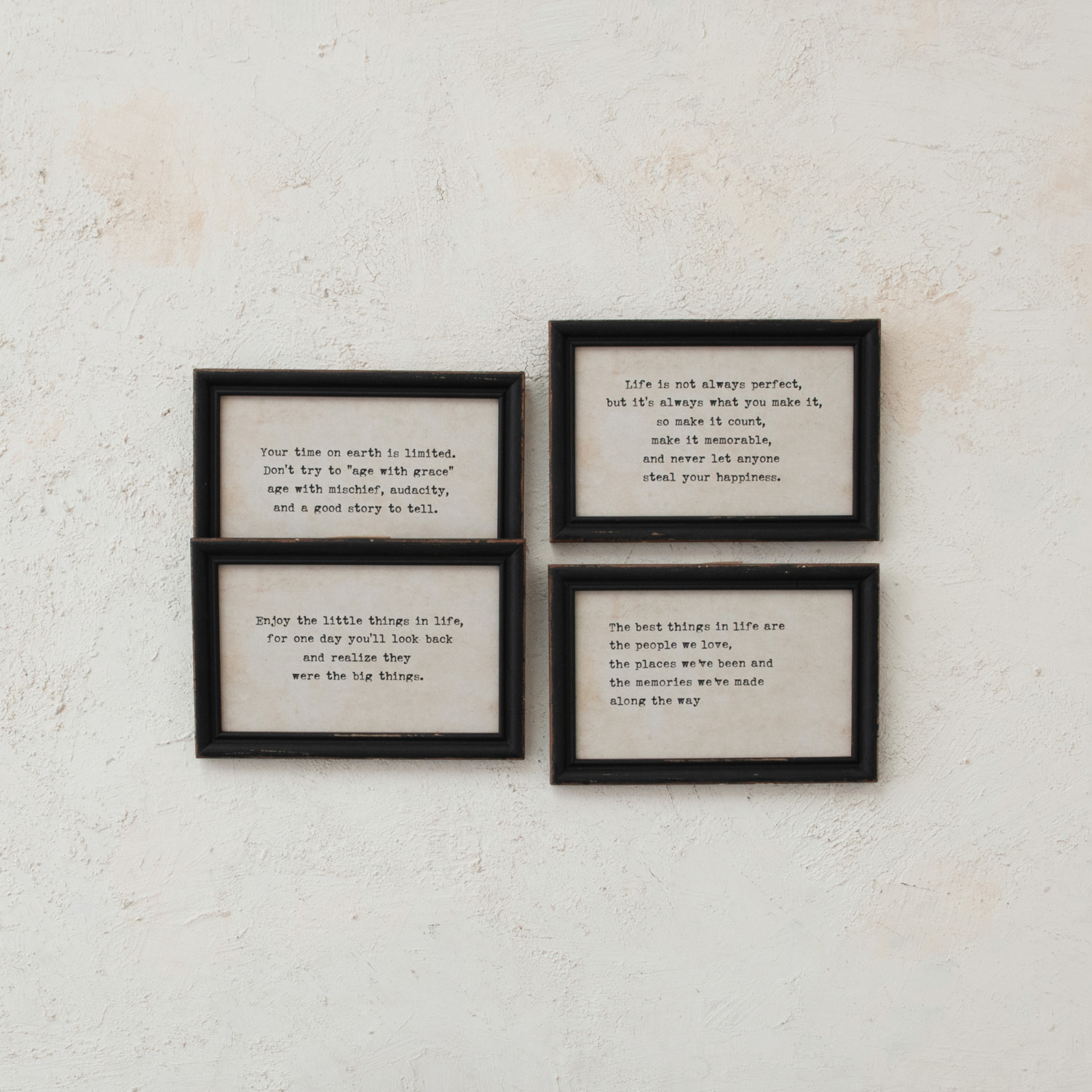 Wood Framed Wall Décor w/ Saying, Black & White, 4 Styles