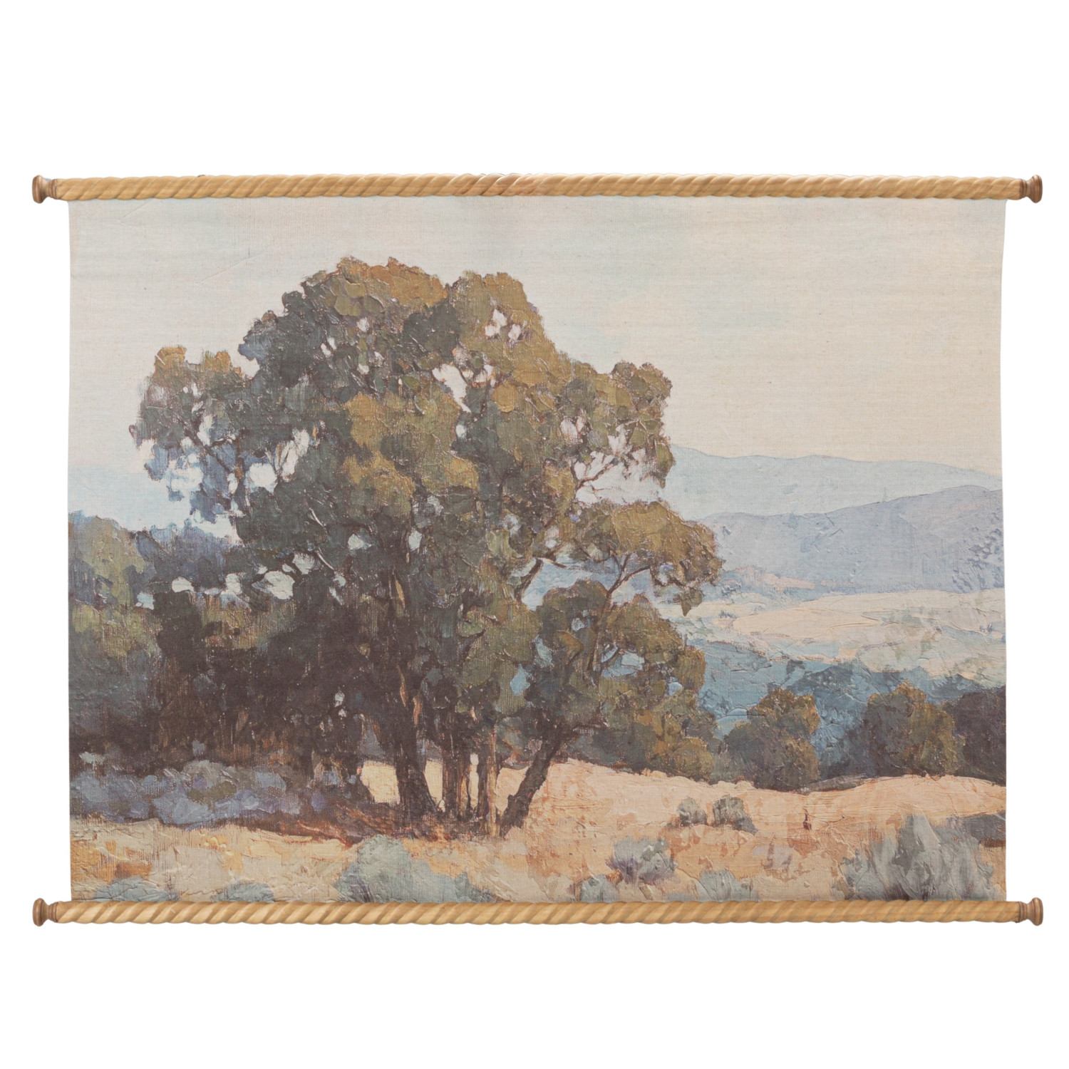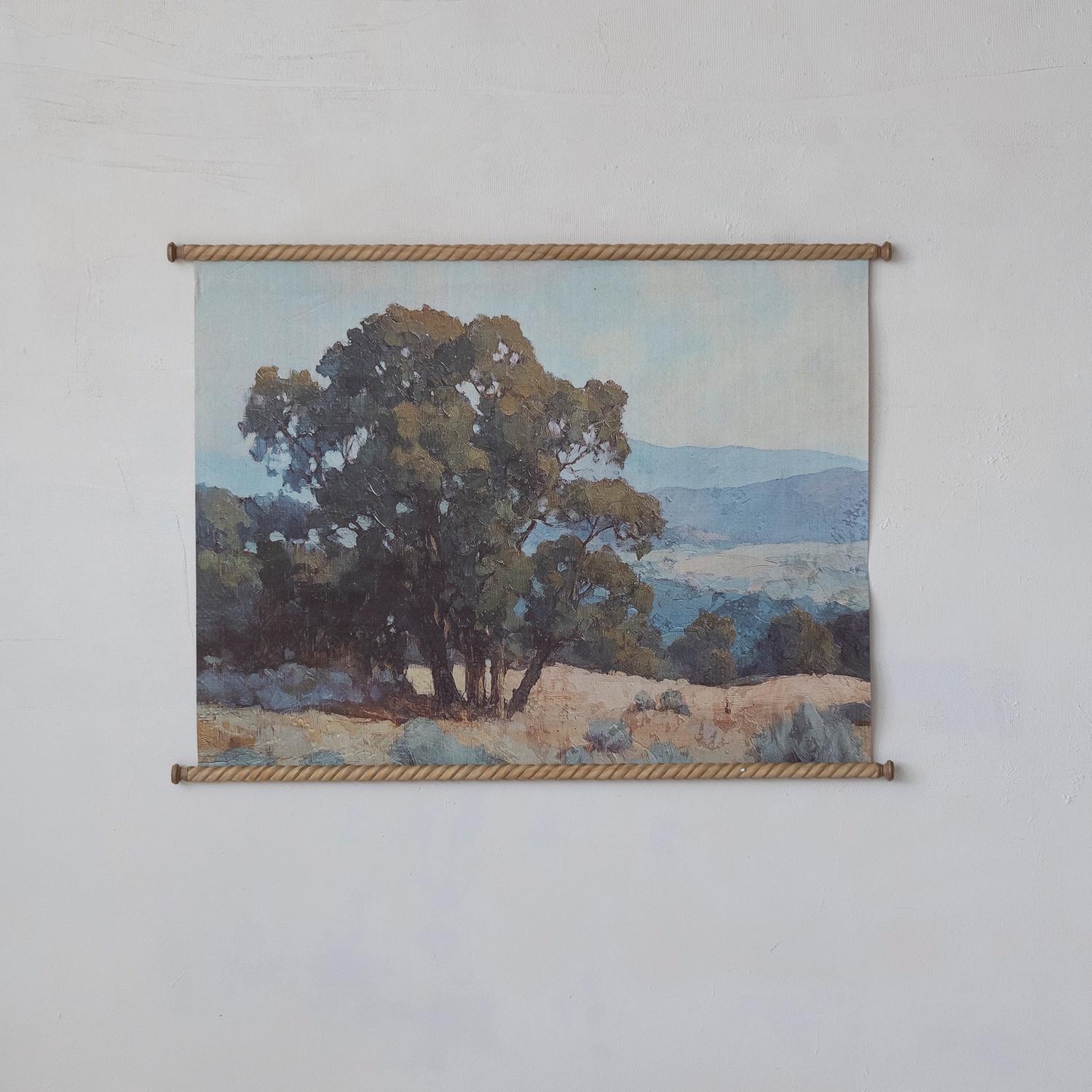 Carved Wood & Canvas Scroll Wall Decor with Landscape