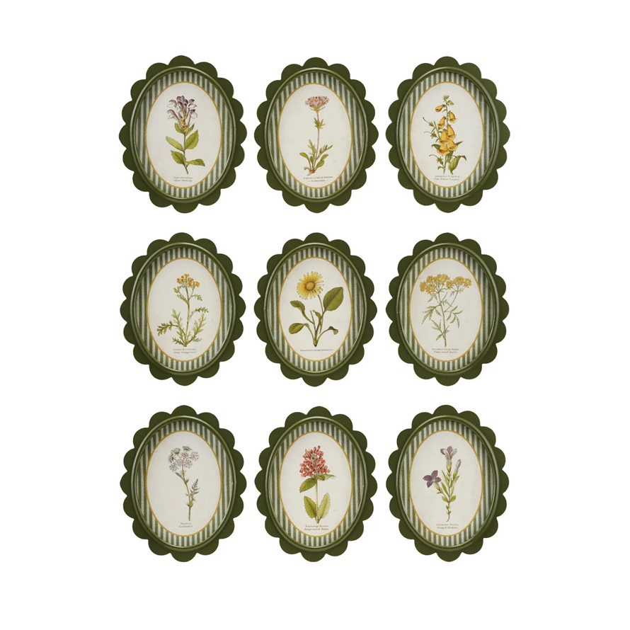 Oval MDF Framed Glass Scalloped Wall Decor with Flower & Striped Mat, 9 Styles