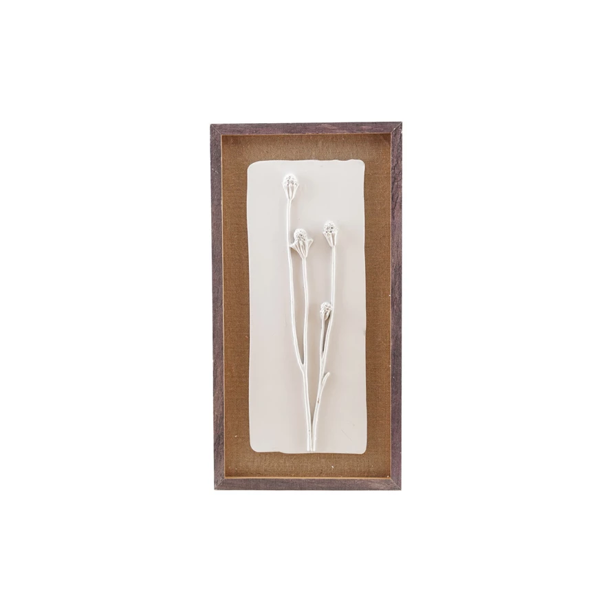 Catalog Name: 12-1/2"W x 24-1/4"H Wood Framed Wall Décor w/ Plaster Cast Botanical & Jute Mat, White & Brown