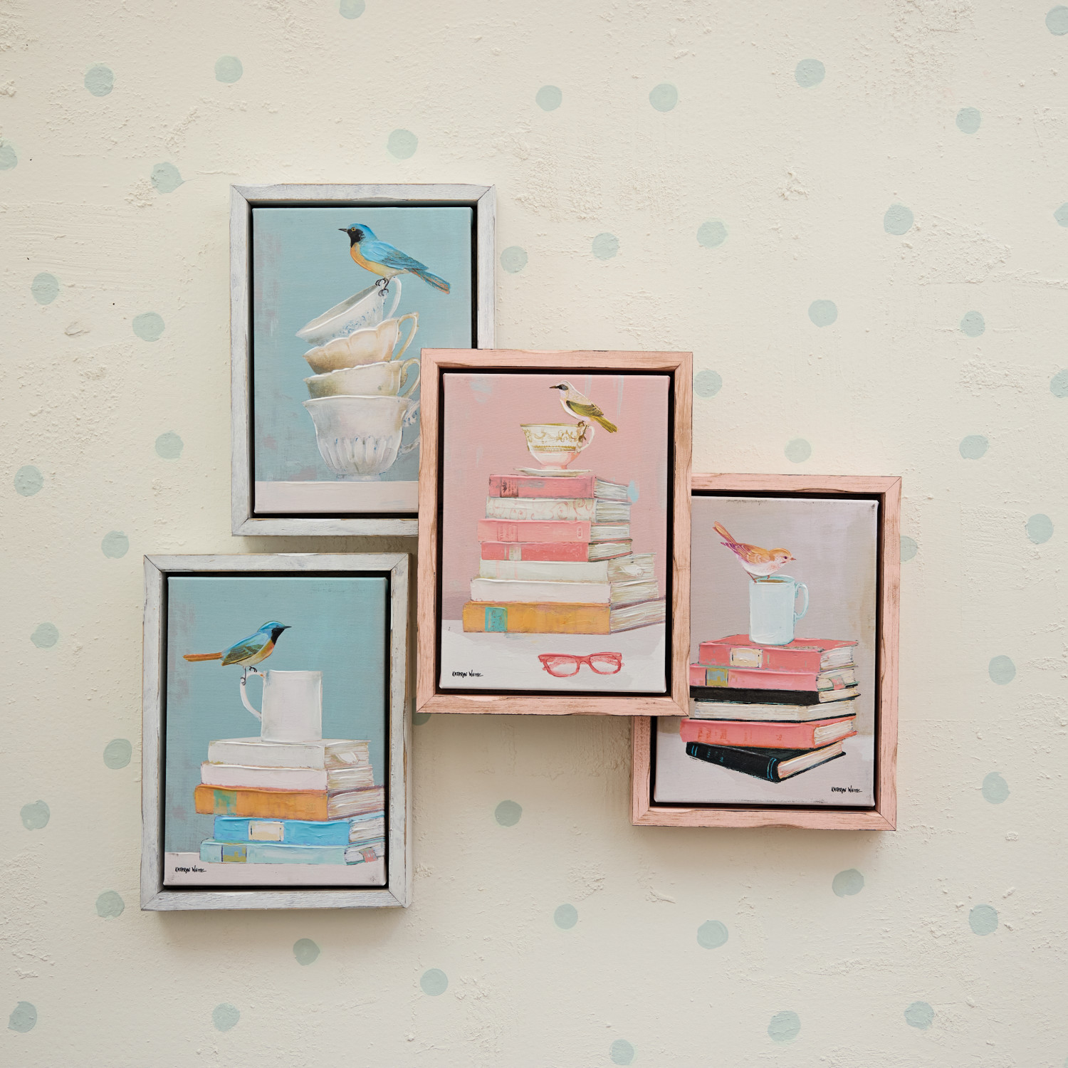 Catalog Name: 12"W x 16"H Wood Framed Hand-Painted Canvas Wall Décor w/ Bird & Mugs/Books, Multi Color, 4 Styles