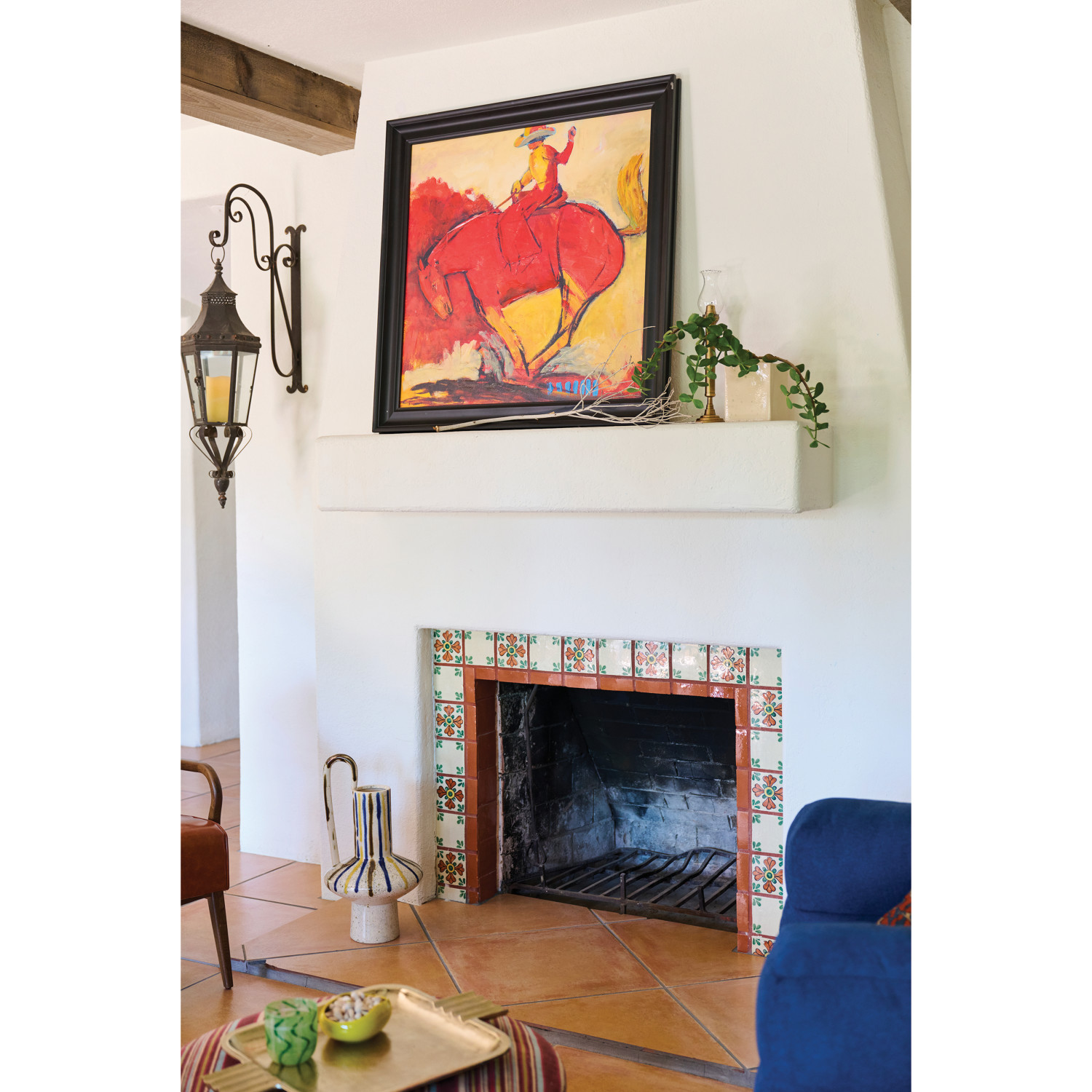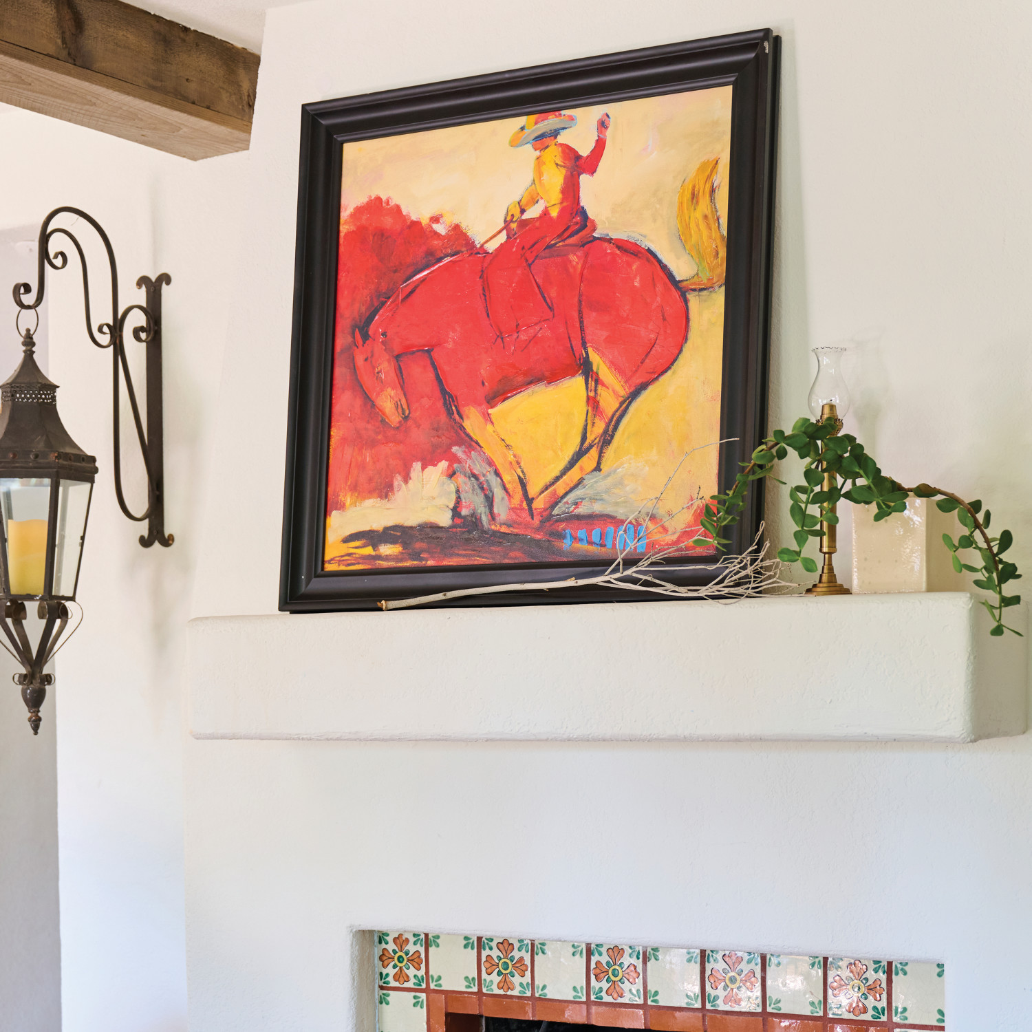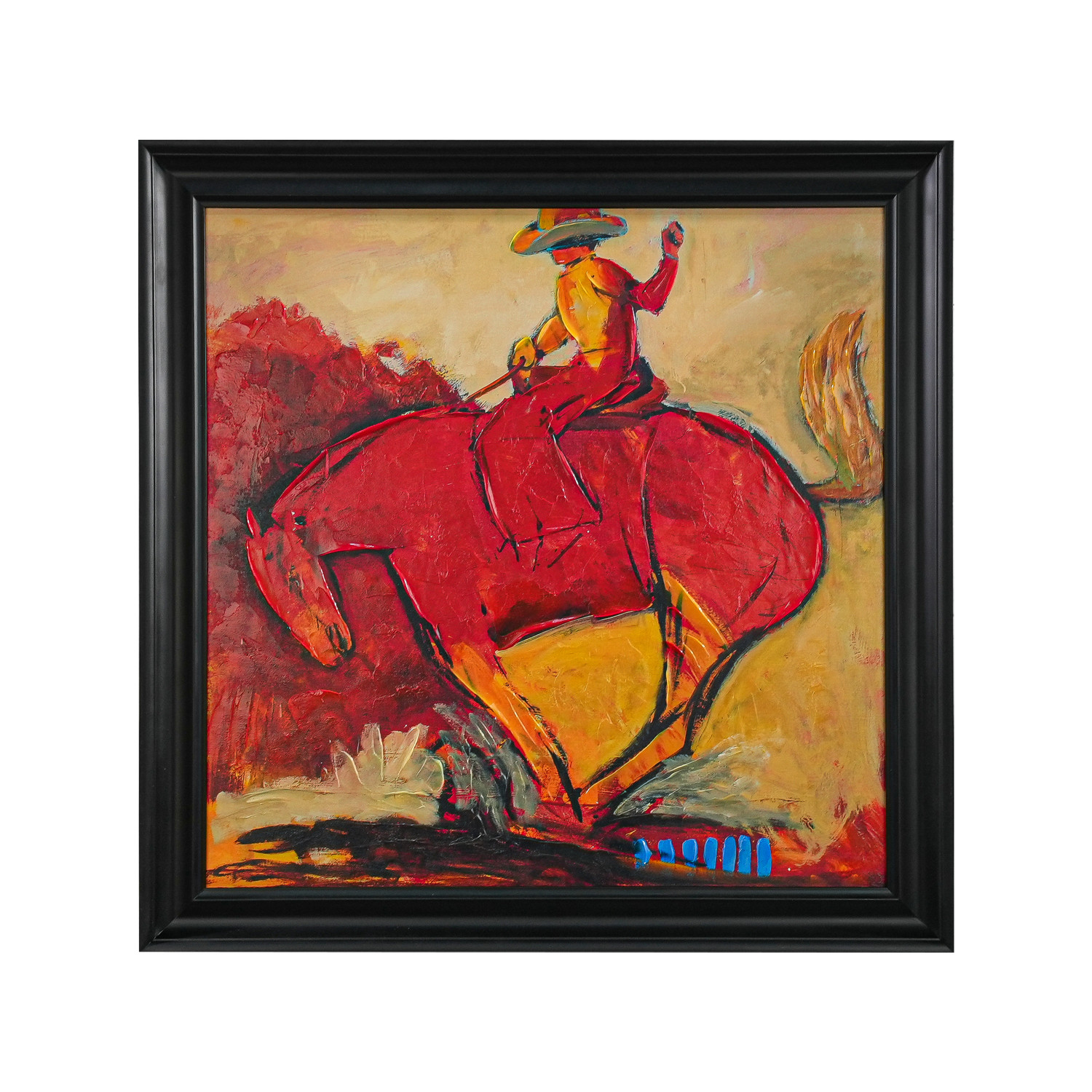 Wood Framed Hand-Painted Canvas Wall Decor with Cowboy on Horse
