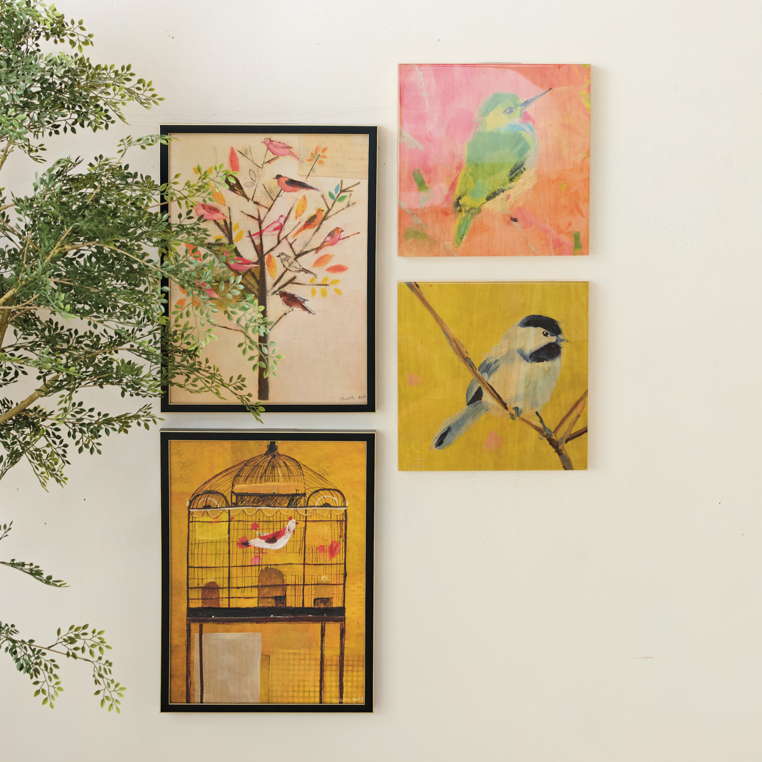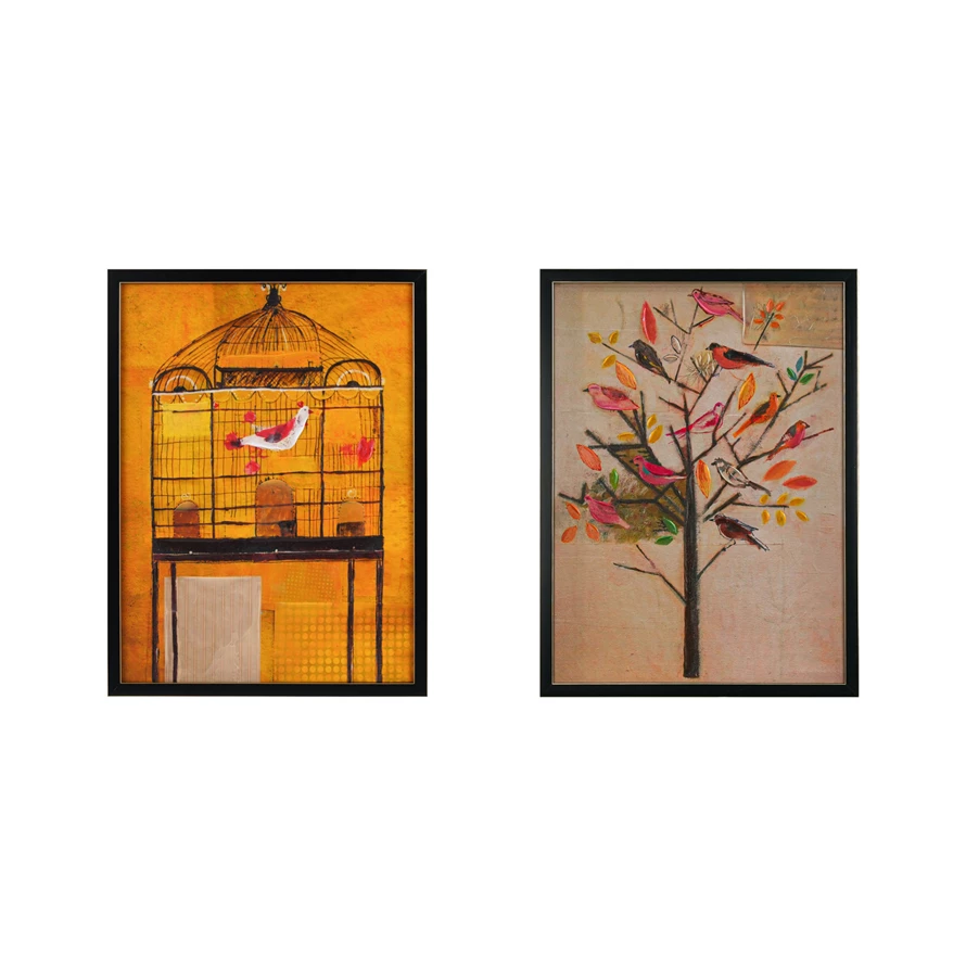 Moulded Composite Framed Canvas Wall Decor with Hand-Painted Birds & Tree/Cage, 2 Styles