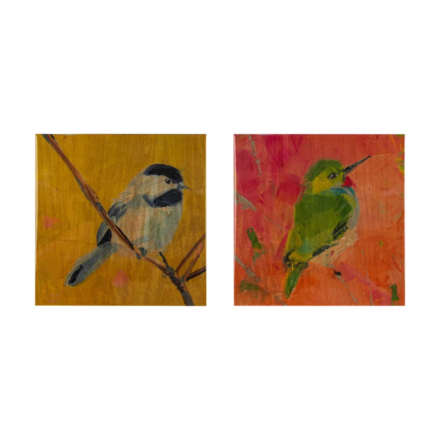 Catalog Name: 16" Square Hand-Painted Lacquered Wood Wall Décor w/ Bird, Multi Color, 2 Styles