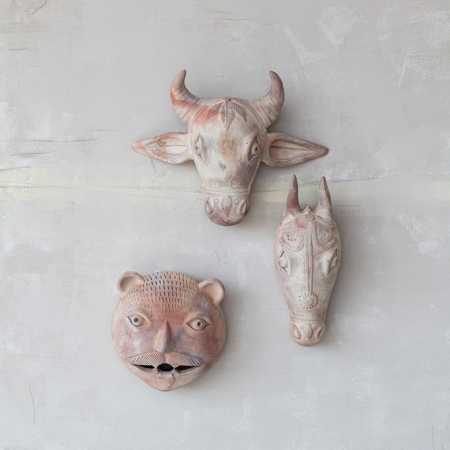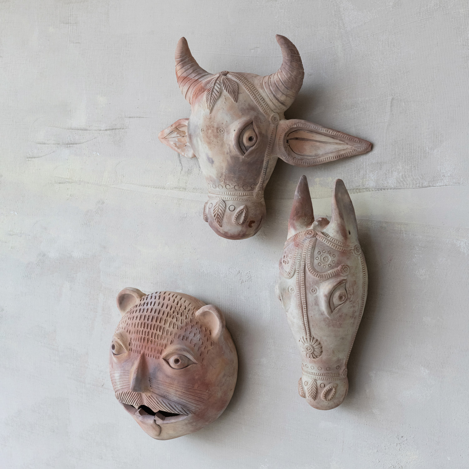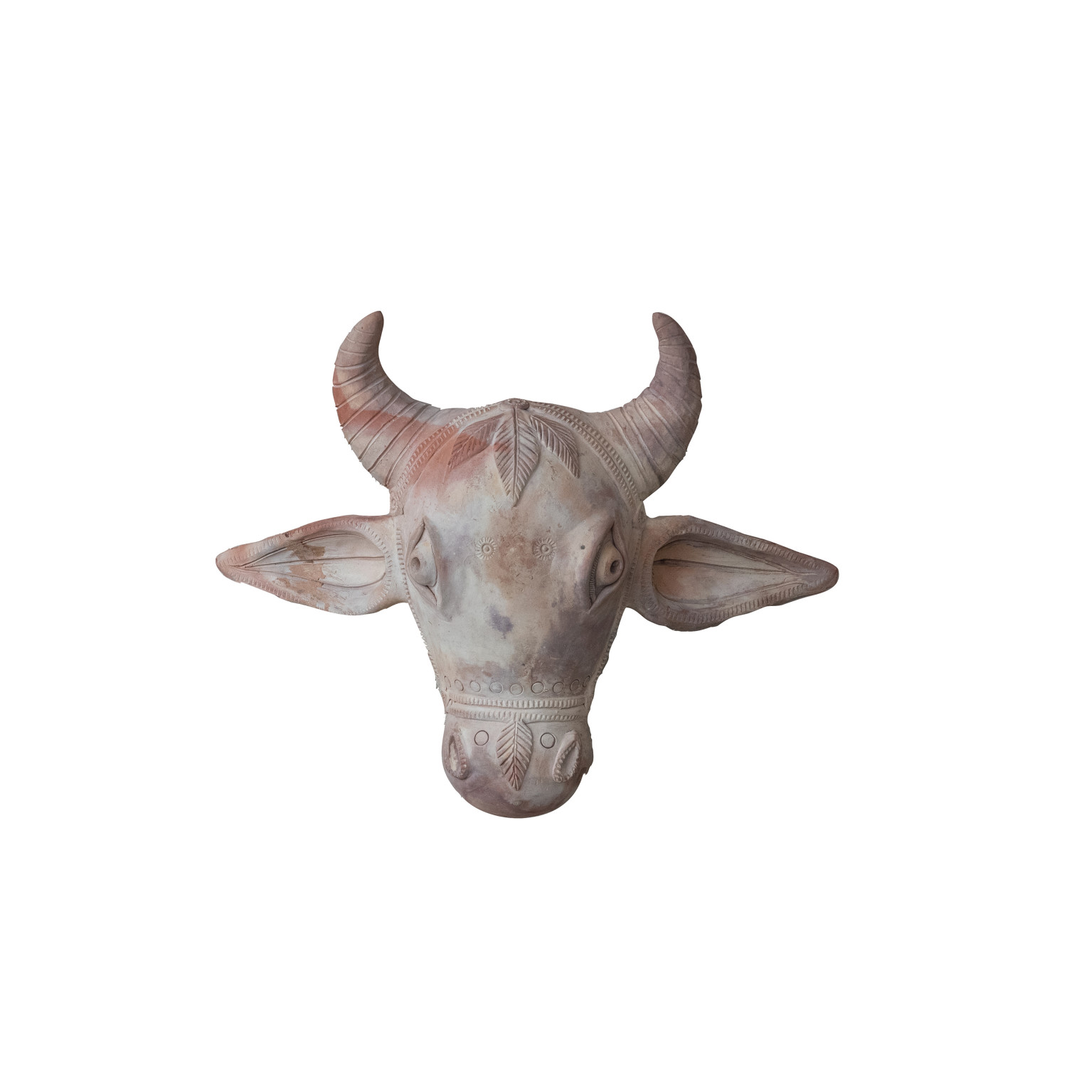 Catalog Name: 19"W x 7"D x 16"H Handmade Terra-cotta Cow Head Shaped Wall Décor, Whitewashed, Truck Ship