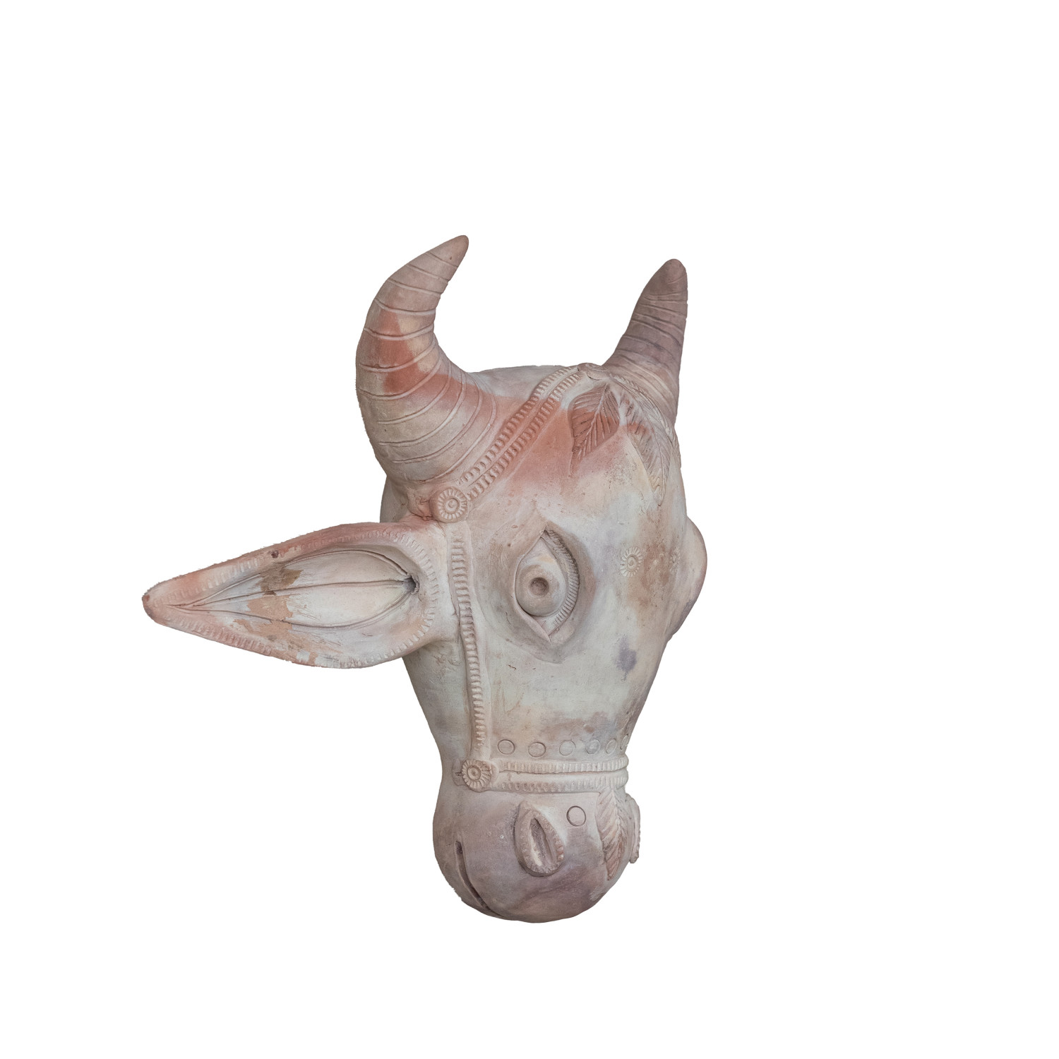 Handmade Terra-cotta Cow Head Shaped Wall Décor, Whitewashed