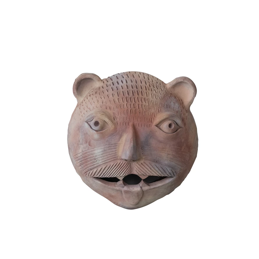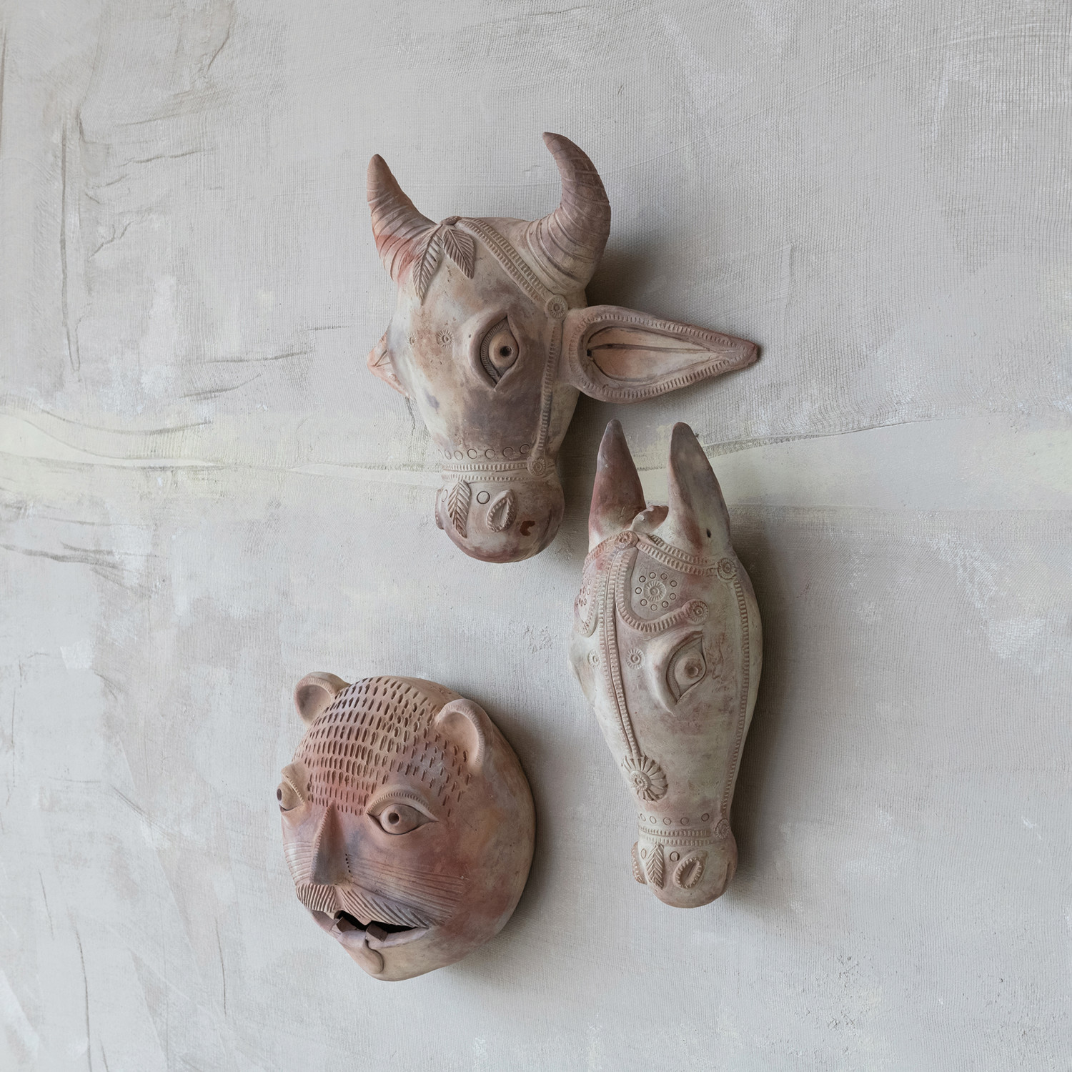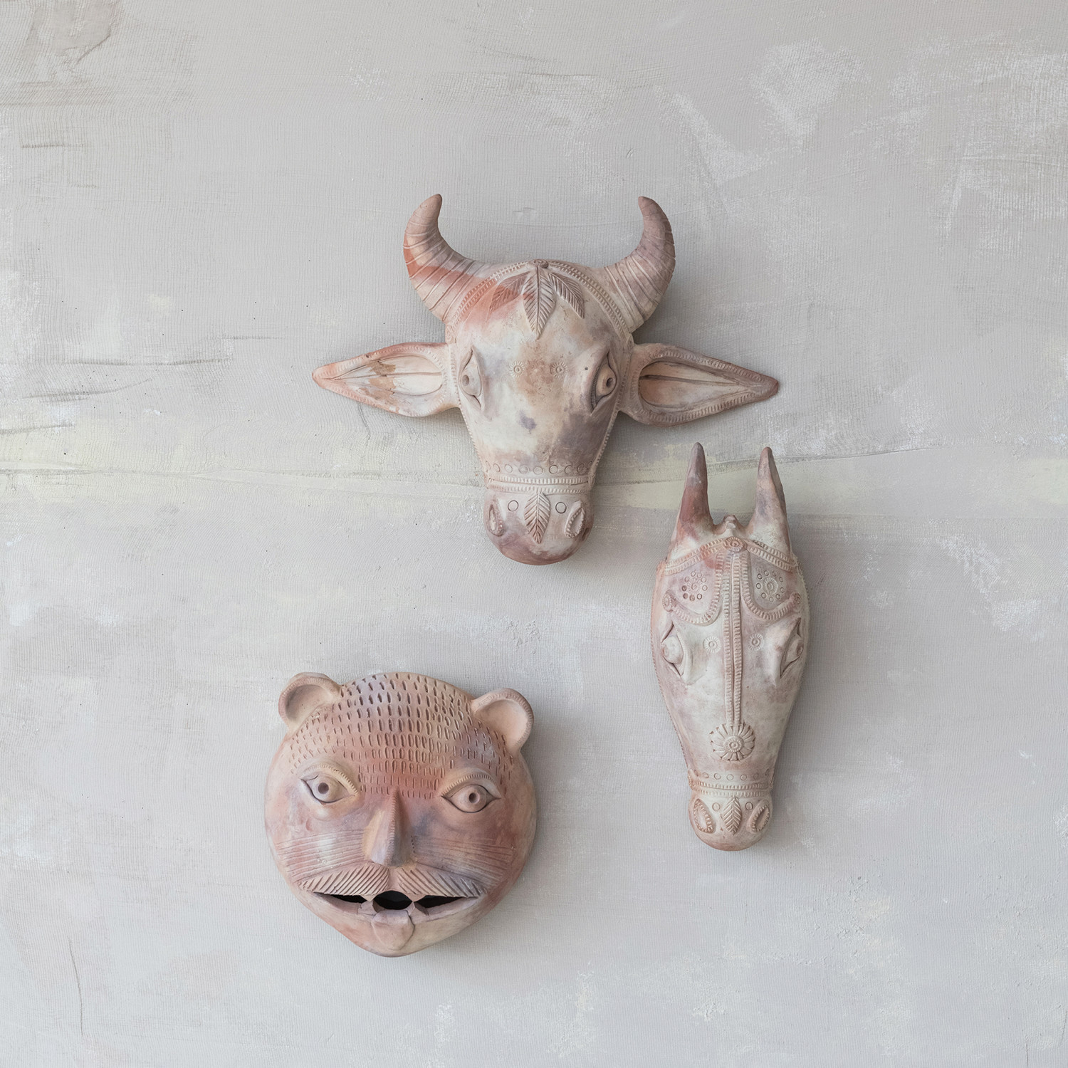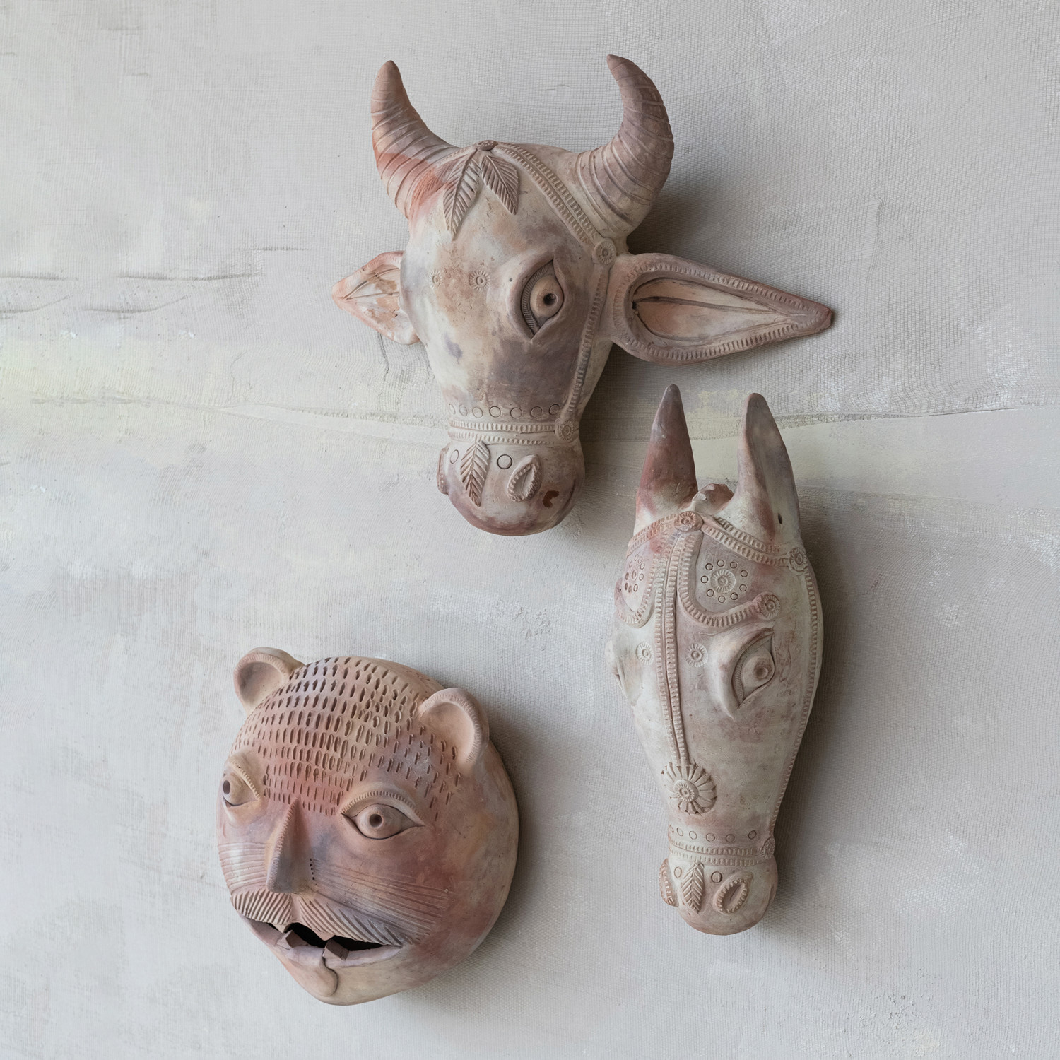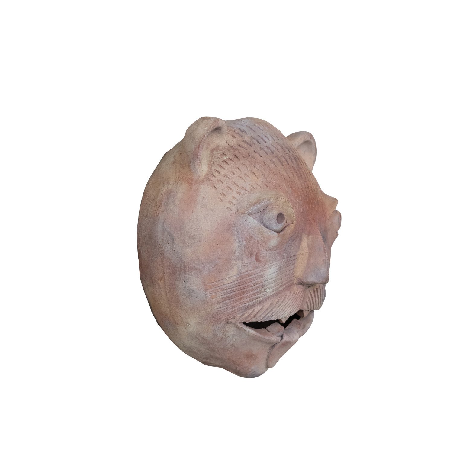 Handmade Terra-cotta Tiger Head Shaped Wall Décor, Whitewashed