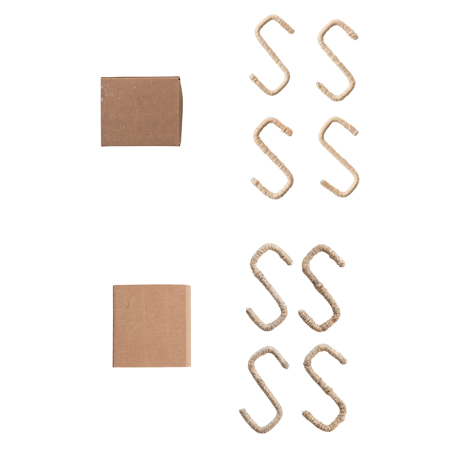 Catalog Name: 2-1/2"L x 2-1/2"H Wire & Natural Fiber Wrapped S-Hook, Boxed Set of 4, 2 Colors