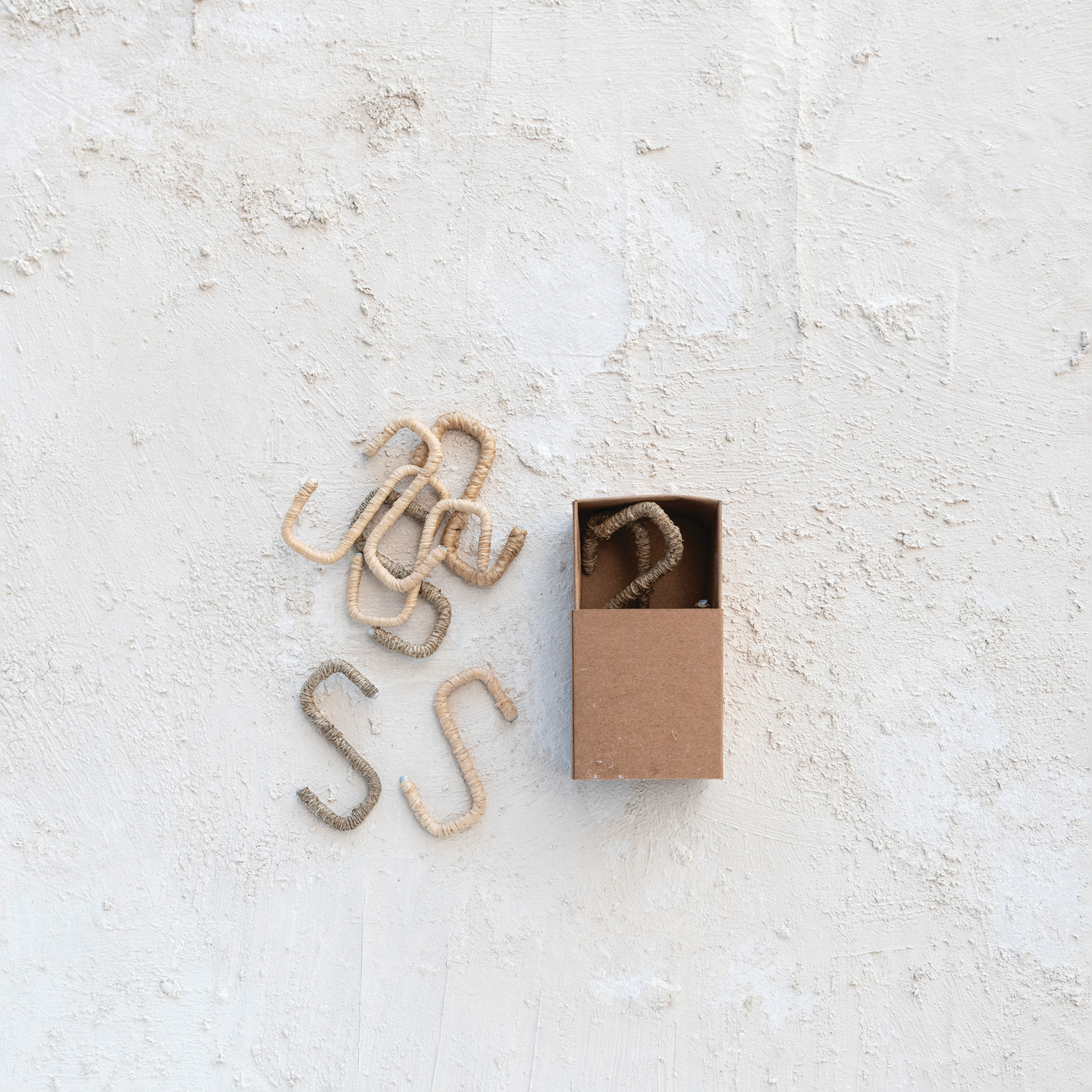 Wire & Natural Fiber Wrapped S-Hook, 2 Styles, Boxed Set of 4
