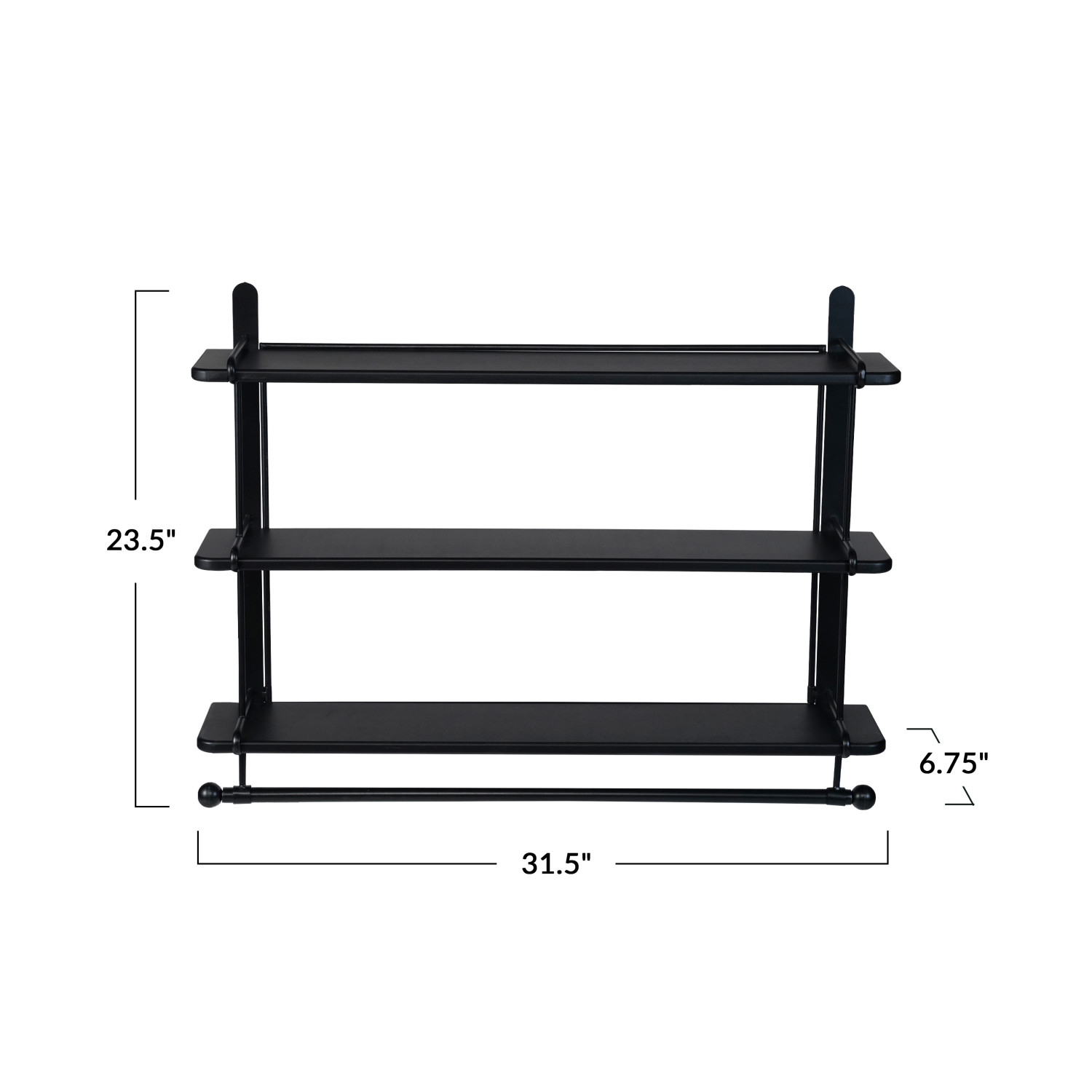 Catalog Name: 31-1/2"W x 6-3/4"D x 23-1/2"H Wood & Metal Wall Shelf w/ 3 Shelves & Rod, Black, KD