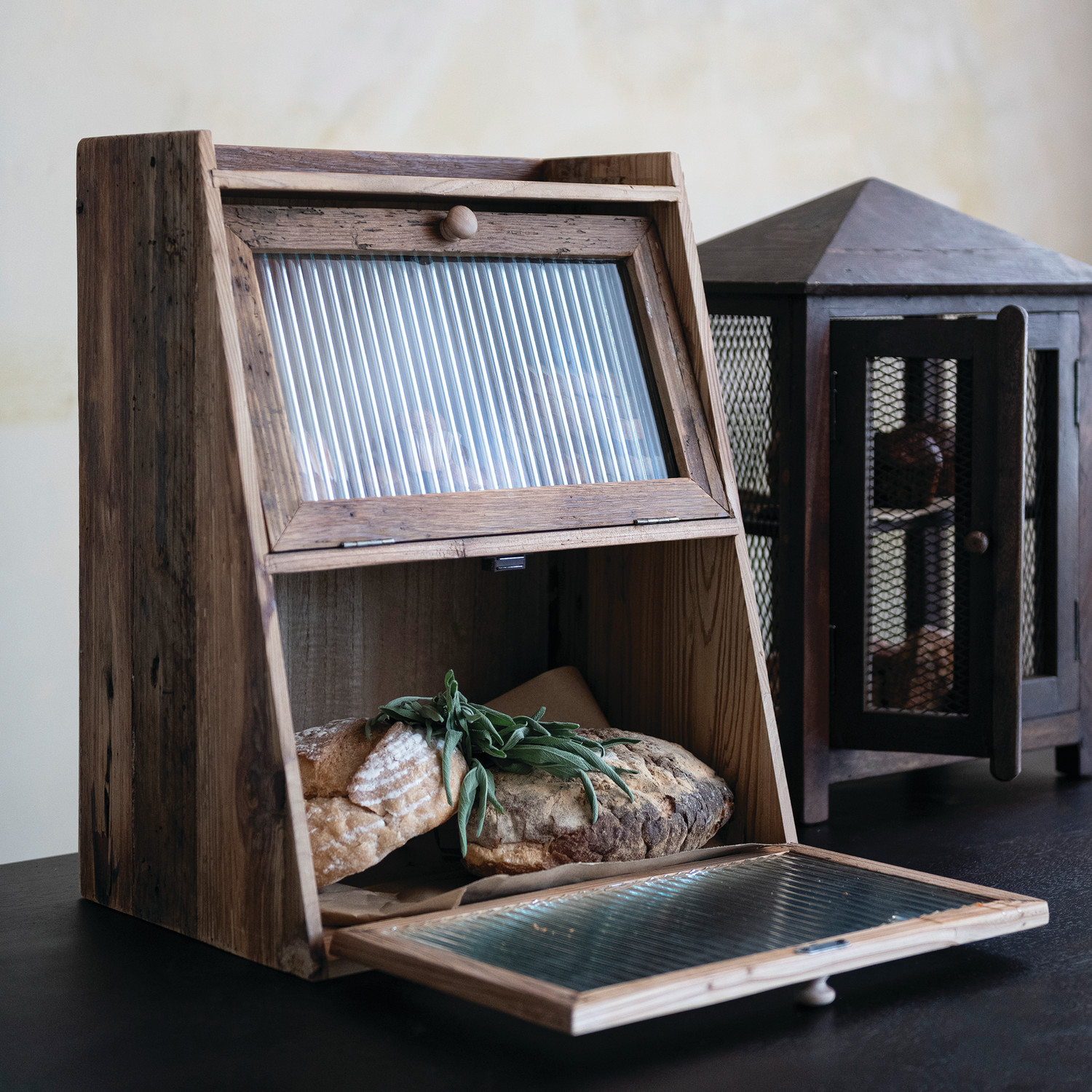 Catalog Name: 15-3/4"W x 11"D x 19-1/2"H Wood Wall Cabinet w/ 2 Fluted Glass Doors & 1 Shelf, Distressed Finish, Natural (Hangs or Sits)