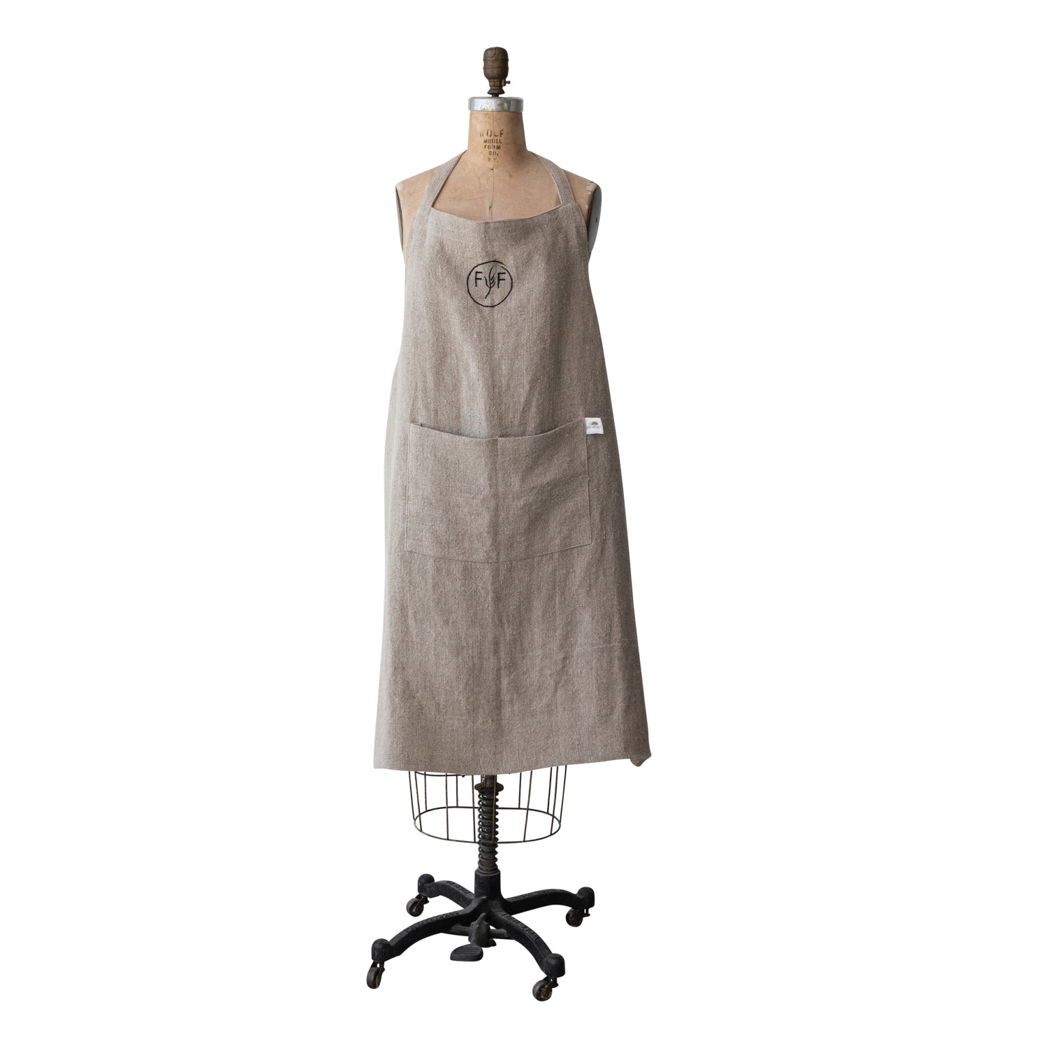 Catalog Name: 35"L x 28"W Woven Linen & Cotton Apron w/ Pocket & Embroidered "Finch + Fennel" Logo, Natural