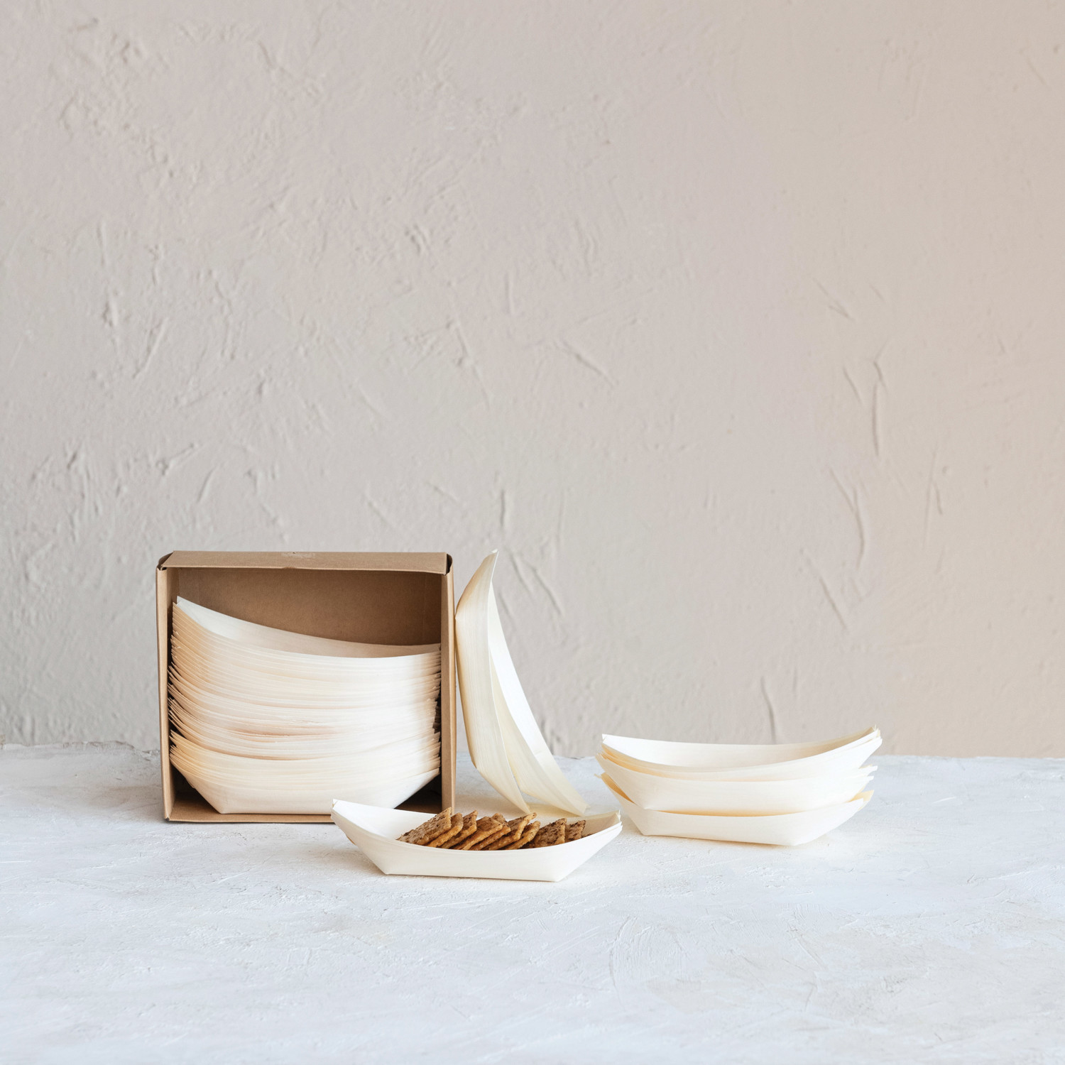 Wood Single Use Snack Boats in Kraft Box, Set of 50