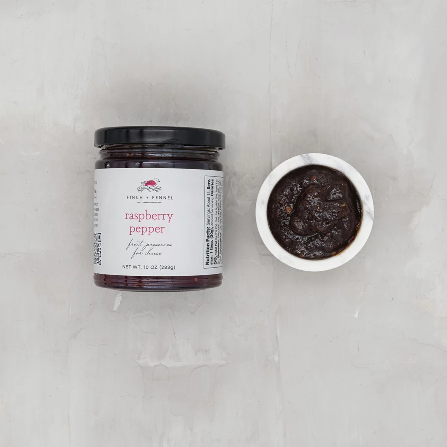 Raspberry Pepper Fruit Preserves for Cheese. Perfectly pair this fruit preserve with soft cheeses like goat, cream cheese, blue, or Brie on your next charcuterie board.