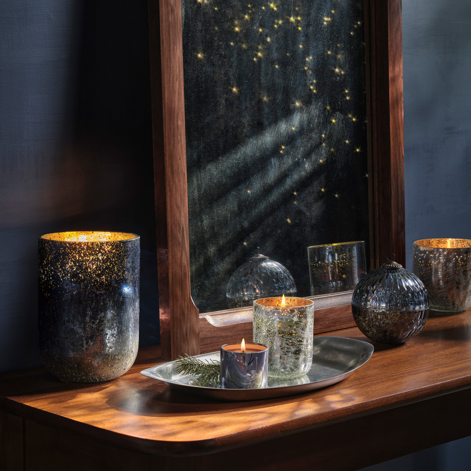 Cool, crisp citrus sparkles atop notes of festive fir and fresh black current berries, a seasonal celebration grounded by white birch and ebony woods. Soy blend candle poured in the USA; Burn time up to 32 hours.