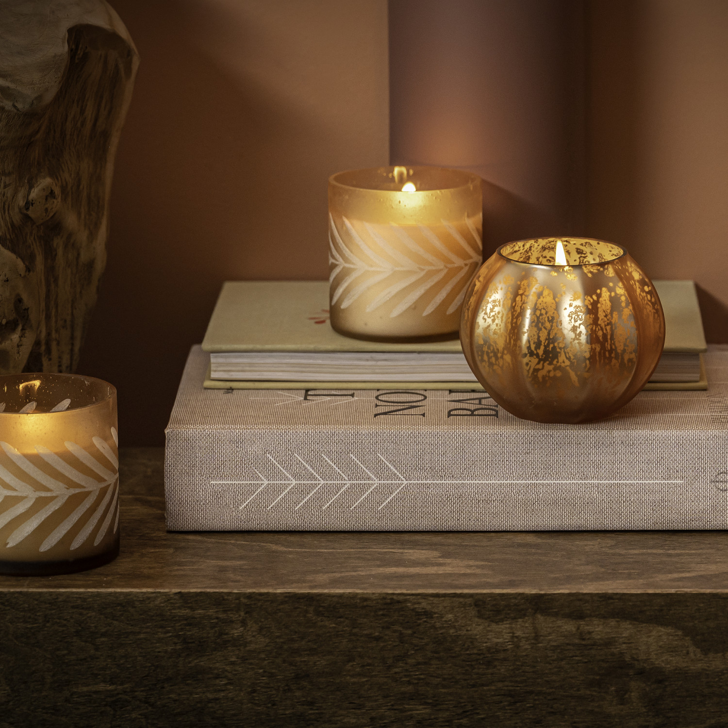 Fragrance description: grounded in smoky cedar, with a heart of soft suede, kissed with earthy amber. Thoughtfully designed from wax to wick, put our candles anywhere and everywhere in the home or office. Bring a bit of glam to the pumpkin patch, adding the perfect autumnal shape and warm glow to any room. Soy blend candle poured in the USA; Burn time up to 40 hours.