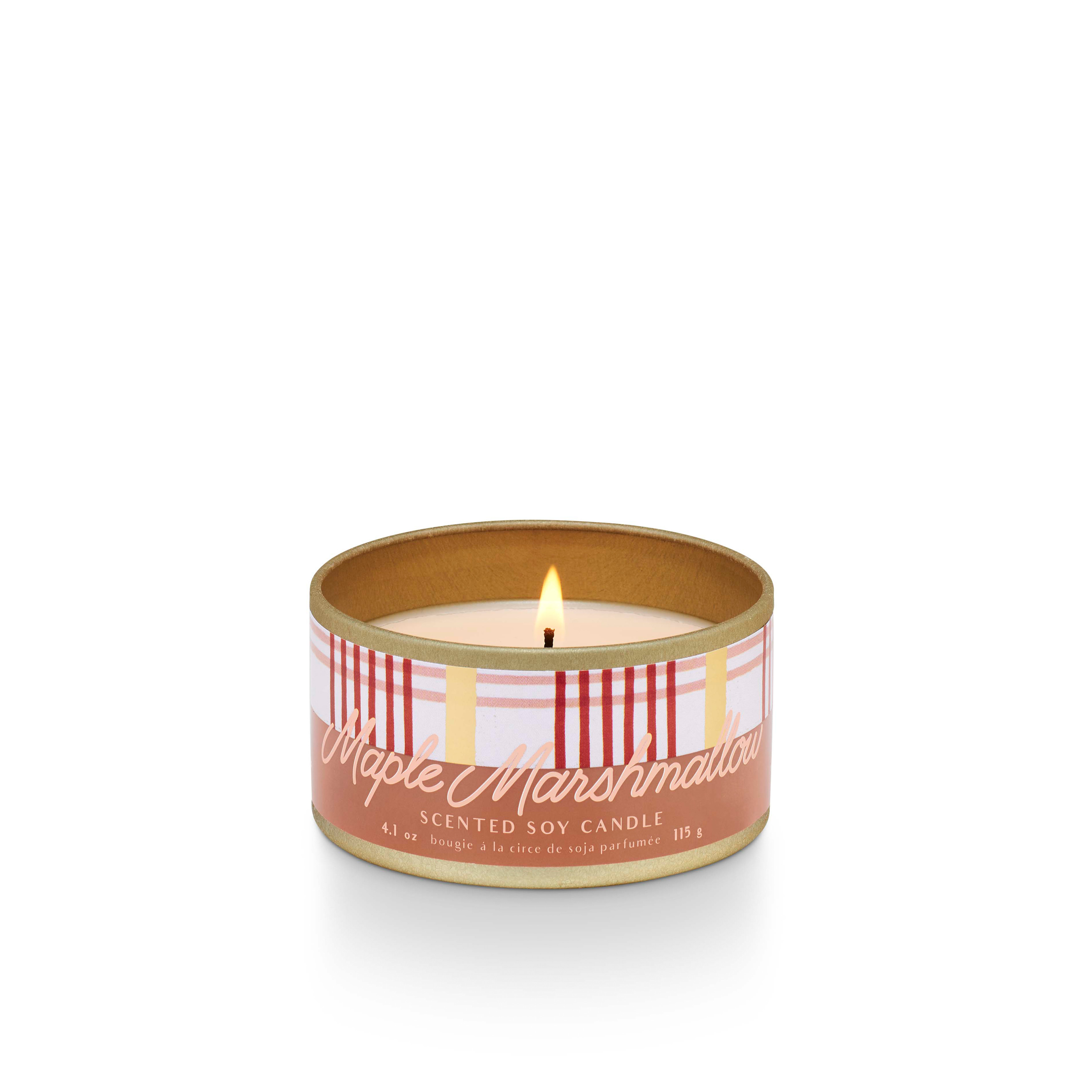 Fragrance Description: sugared marshmallow, warm woods, and maple. This scented 4.1 oz tin candle with lid makes a great gift. 20 hour burn time.