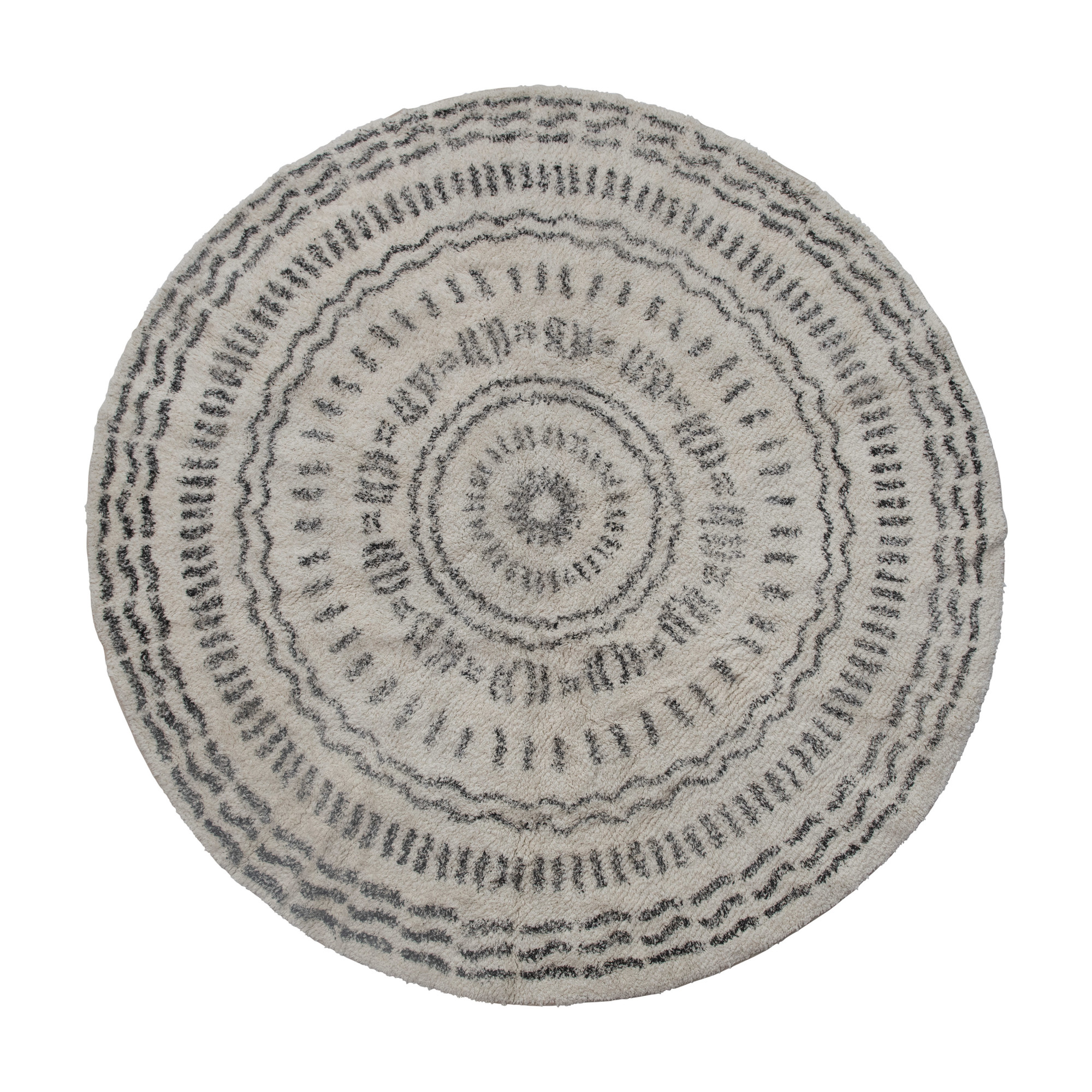 A round rug gives a warm welcome to an entry, interior, or outdoor space.